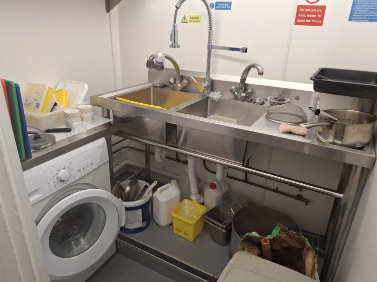 Potato Room 150 sq.ft. (14 sq.m) with fridges, freezers, chipper, peeler and sluice.